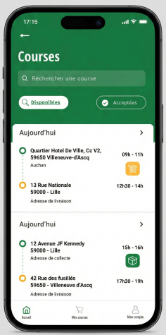 L’application permet aux clients de déléguer leurs courses à un shopper de confiance, avec un suivi en temps réel, des notifications à chaque étape et une livraison directement à domicile. Elle s’adresse aux :